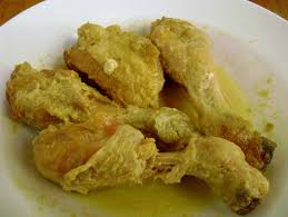Ayam setelah dibersihkan dibelah dua. Taruh di wajan, bubuhi bumbu-2 ( 2 macam bawang dan garam ) yg telah ditumbuk halus.